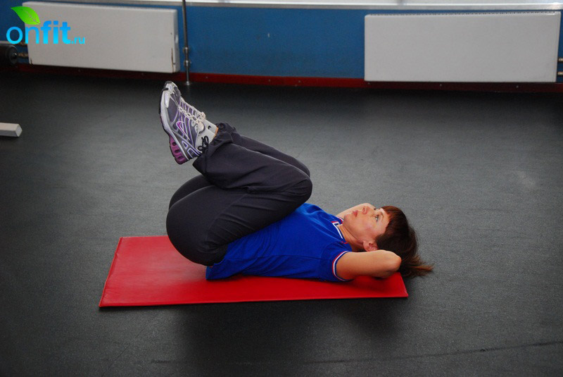 | Тренируем "позу эмбриона": подтяните согнутые ноги и голову с |